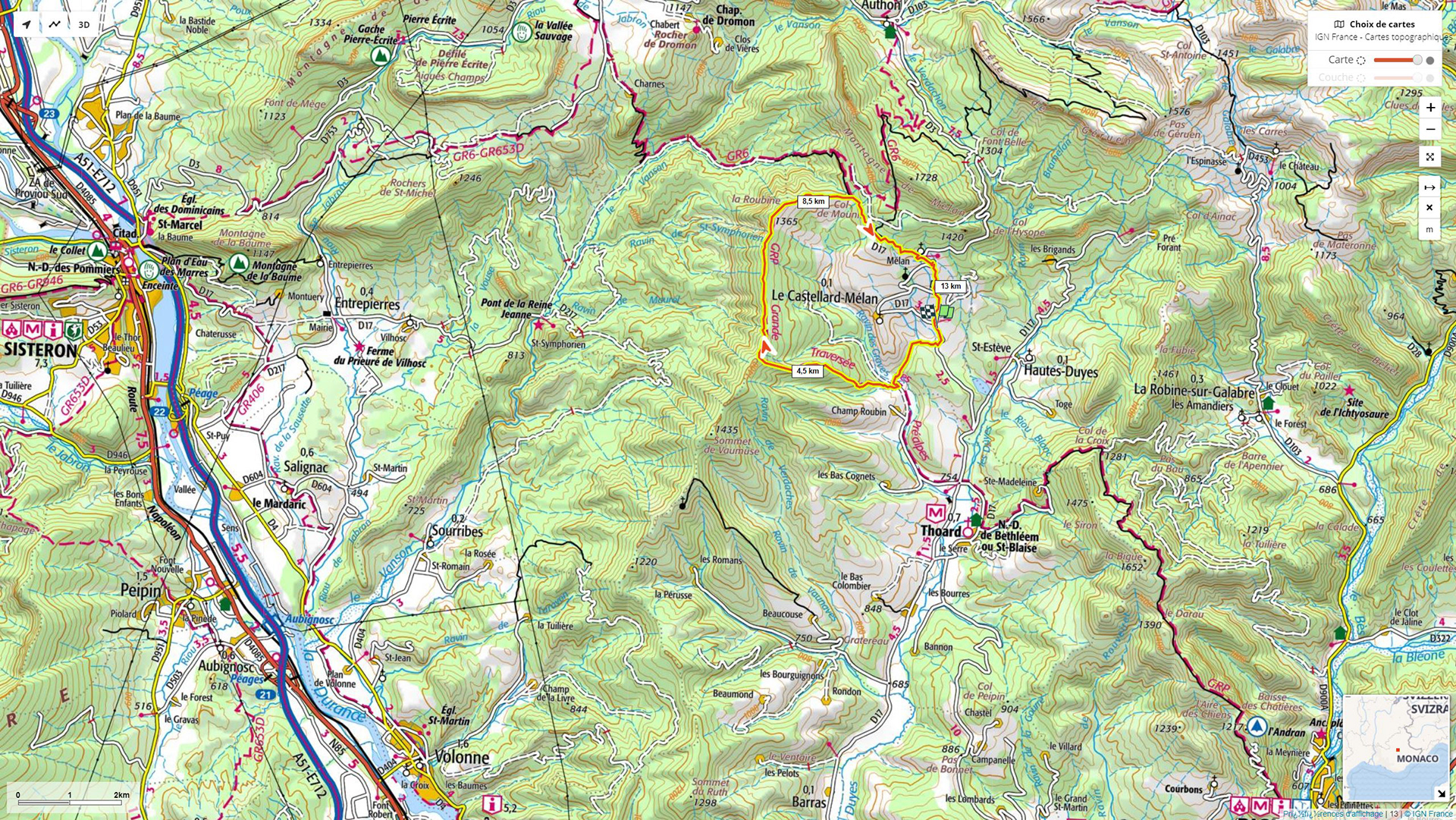 Après la Combe, et la traversée du ravin des Graves, direction THOARD sur 200m avant d'obliquer à fond sur la gauche pour rattraper le sentier GTPA en direction de la crête de Vaumuse