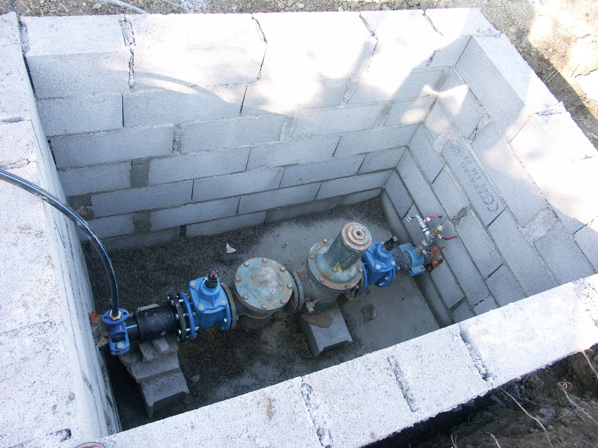 Construction du regard de Pécoulet, un groupe réducteur de pression + 4 départs de branchements individuels