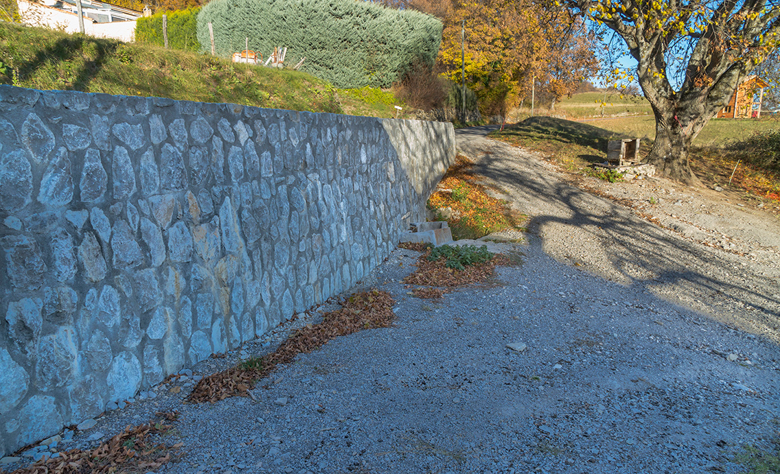 Vue générale de l'accotement (réalisation communale pour l'amont en 2013 et finalisée en 2023 par la Maison technique du Département 04 Digne les Bains)