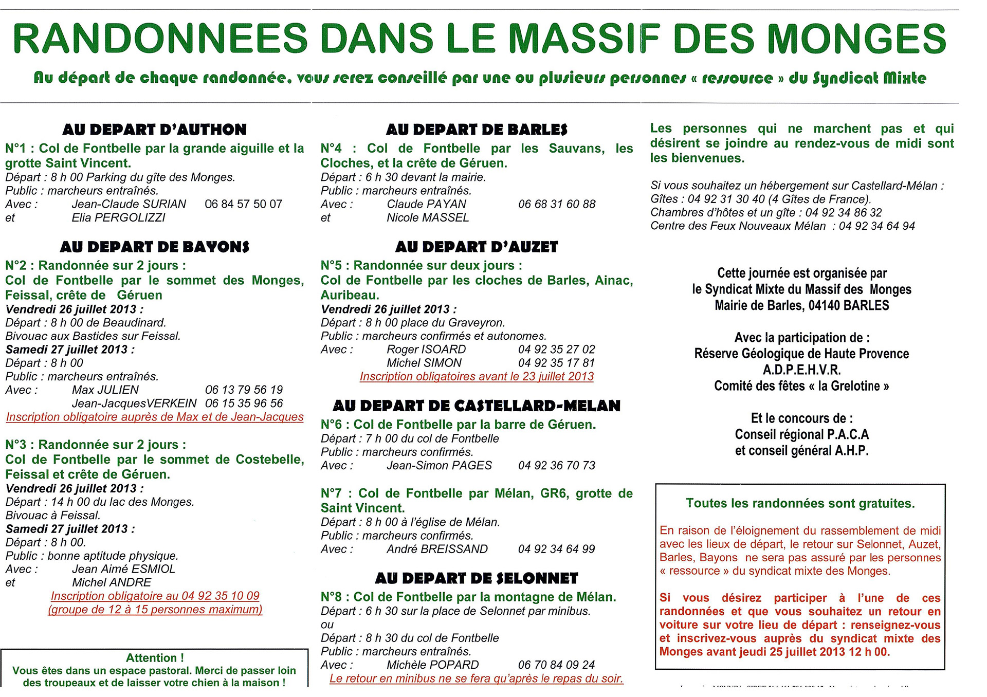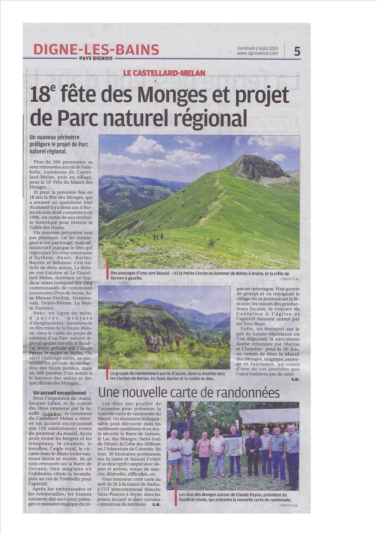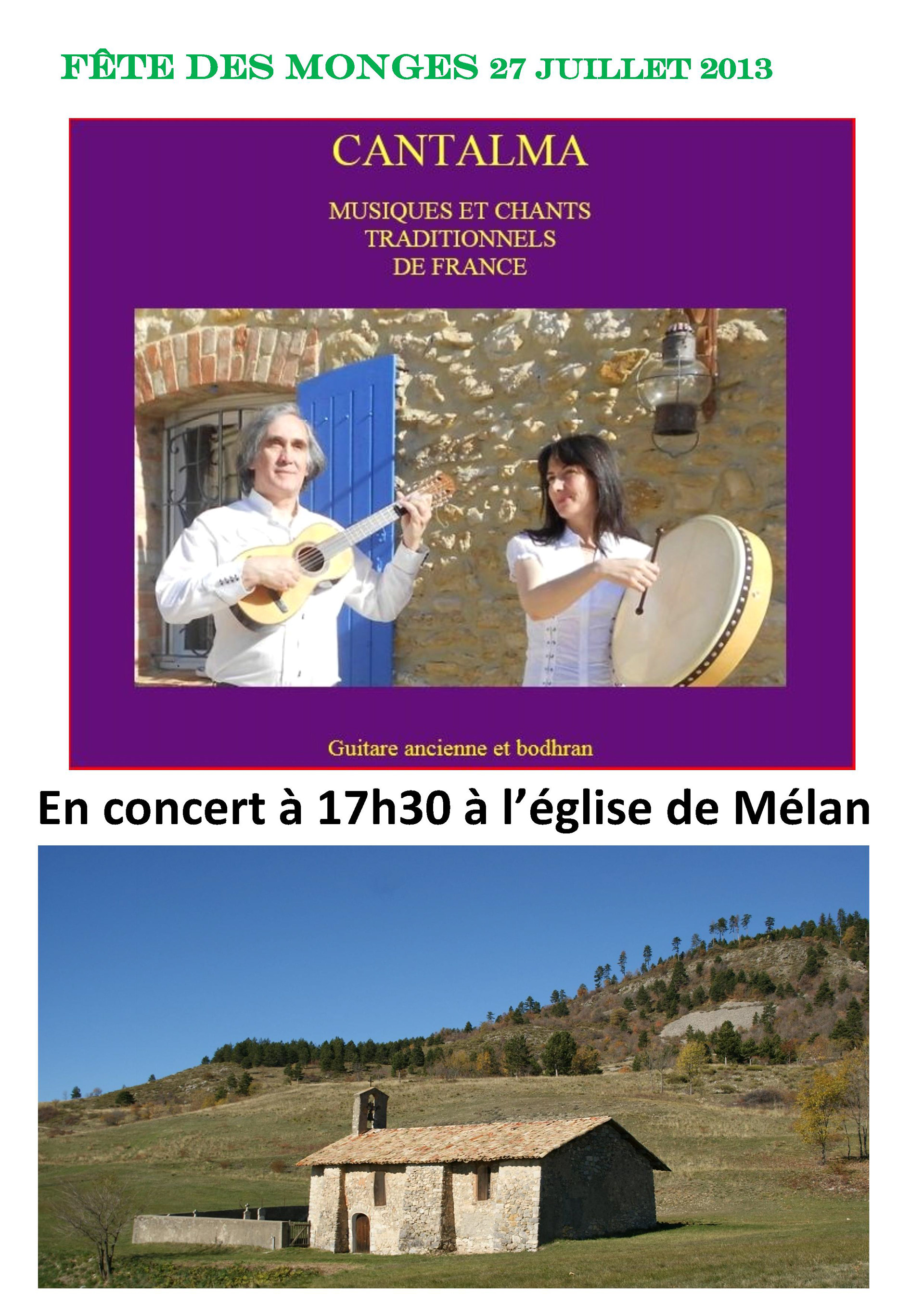 Pour la première fois et sa 18 ième édition, la fête des Monges s'est tenue au Castellard-Mélan. Plus de 150 randonneurs se sont retrouvés au col de Fontbelle puis à Mélan pour un concert et le repas du soir. (GM, du journal La Provence)