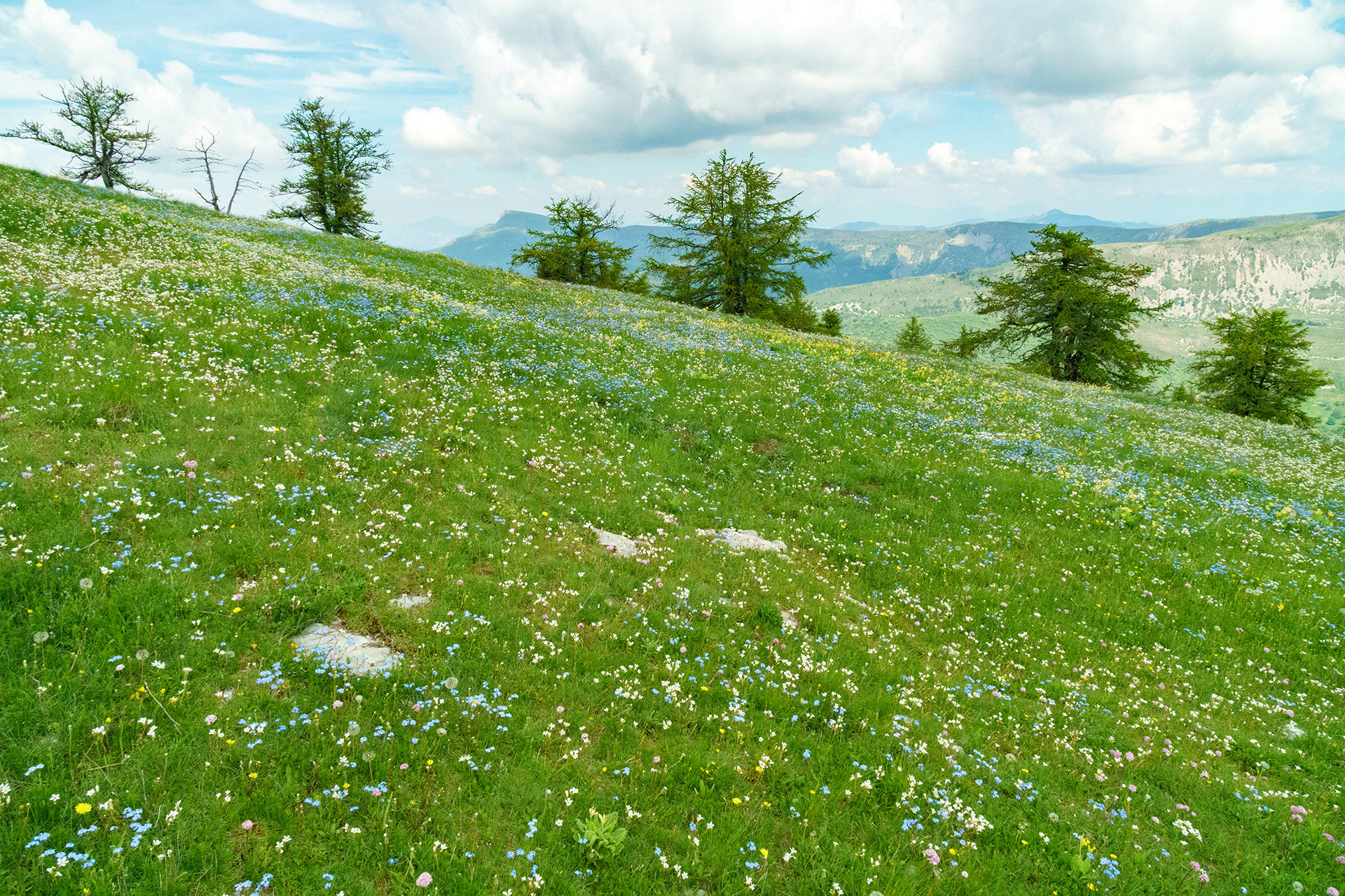 Sur le tracé de la randonnée au départ du col de Fontbelle jusqu'en crête de la barre de Géruen (Aller-Retour).