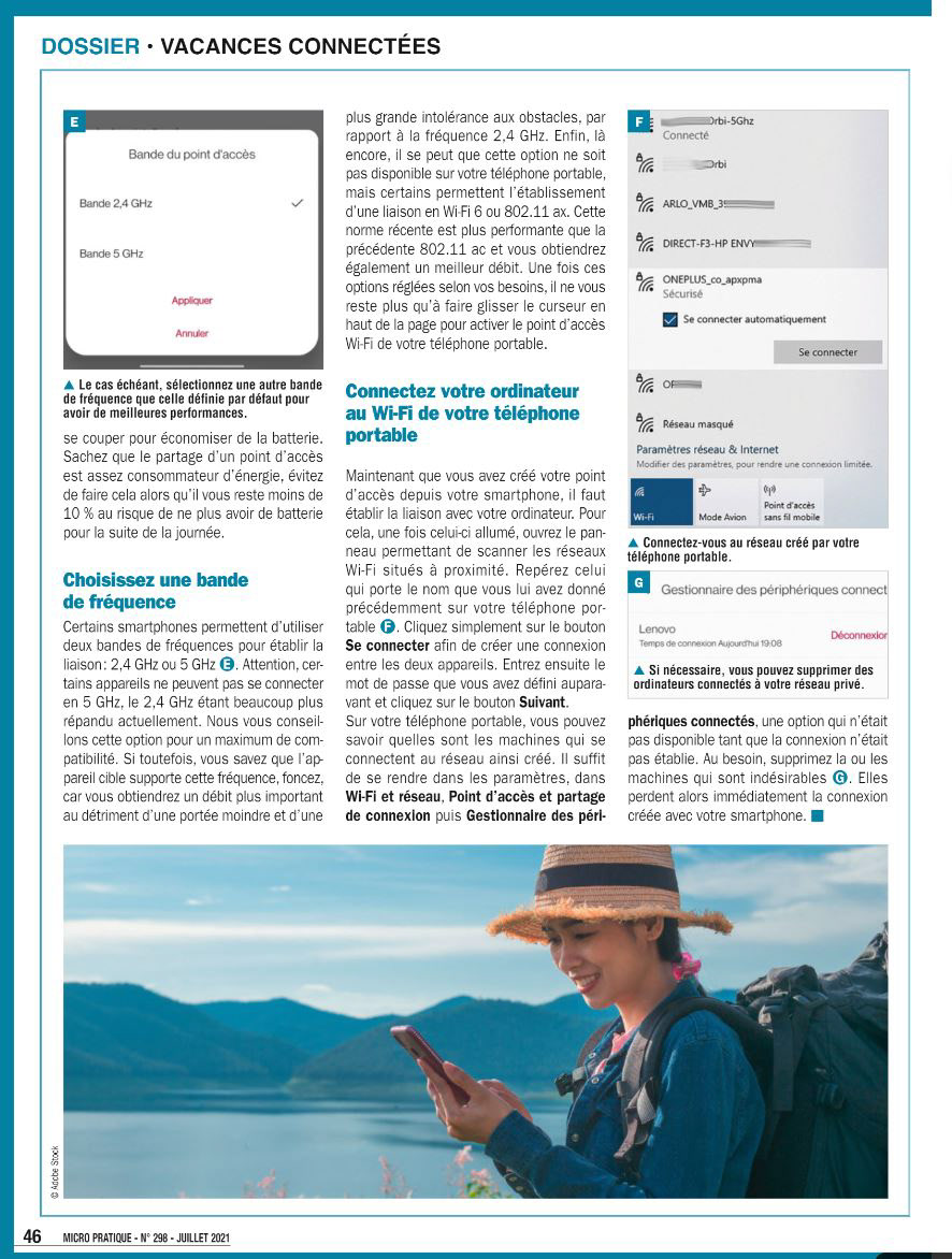 - le partage de connexion avec un téléphone mobile est une possibilité dans le cas d'une utilisation ponctuelle, proche de son téléphone mobile dont le débit est néanmoins assez fluctuant tout au cours de la journée et très disparate selon la zone où l'on se situe dans la haute vallée des Duyes,